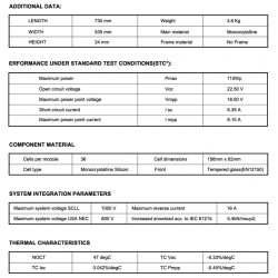 Suurin tehojännite (Vmp): 18,00 V